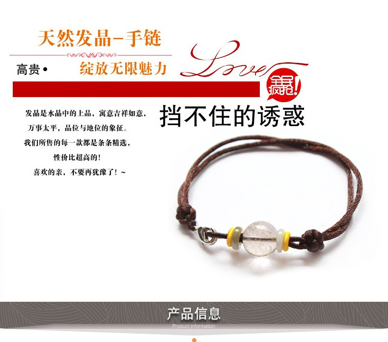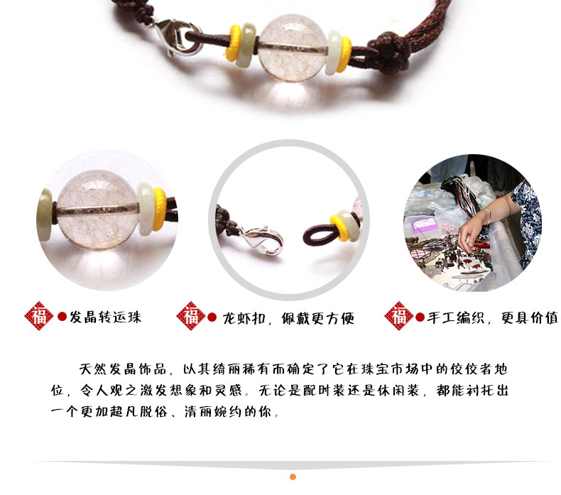 天然发晶转运珠精编手链脚链 招财脚链 韩版时尚男款