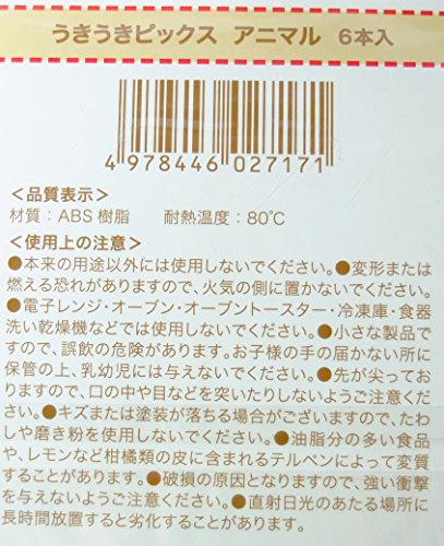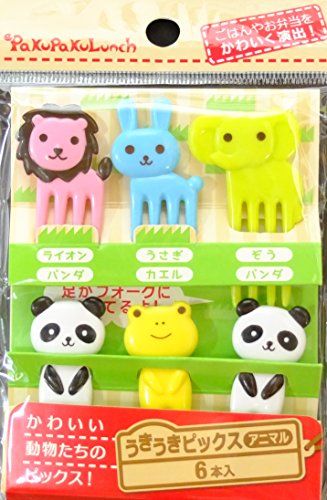 PakupakuLunch Maruki Cute 6 Animals food picks for Bento Box Lunch Box (6pc Set)