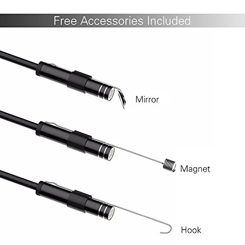 Multifunction - It works well with 6 tiny white LED's that are adjustable from OFF to full brightness for those dark places you want to look into. 5m cable ensures that you can stretch to a deep place.