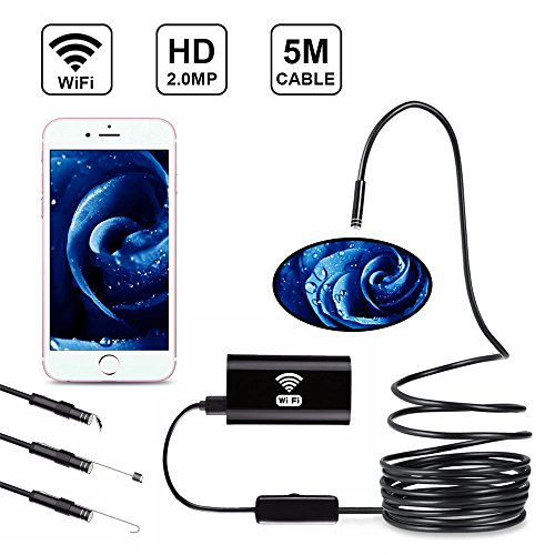 AKASO Wireless Endoscope, 2.0 Megapixels HD 5M Waterproof Wireless WiFi Borescope Inspection Camera for Android and IOS Smartphone, iPhone, Samsung, Tablet and Computers (5M)