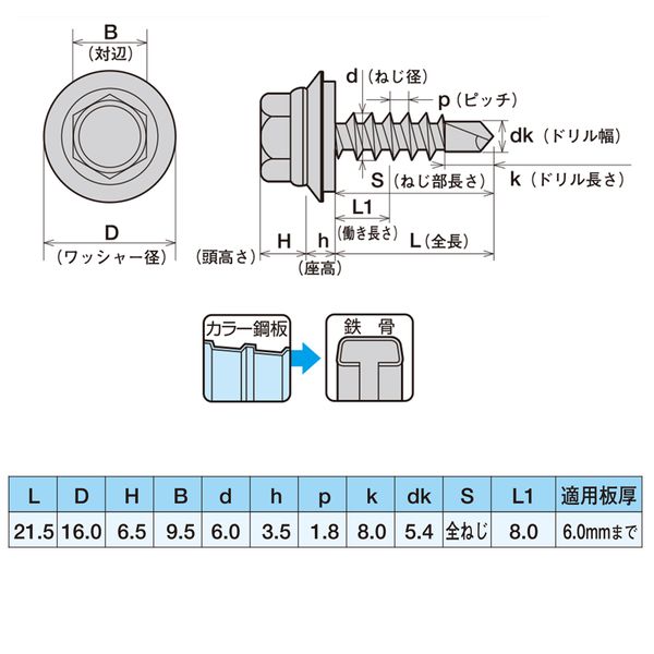 ●カラー鋼板+鉄骨用ドリルビス
