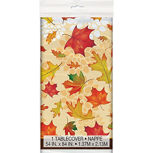 Studio : Unique Publisher : Unique Binding : Kitchen Product Description Looking for a festive way to fight off spills and stains at the Thanksgiving feast? Look no further with this Fall Leaves Plastic Tablecloth. This table cover features colorful falling leaves adorning an earth-tone background, which will surely match the theme of any fall party. Whether it's a large Thanksgiving dinner with extended family and friends or a simple fall get together, this Plastic Fall Leaves Table Cover is a great foundation for a seasonal party spread. 0