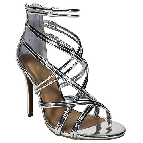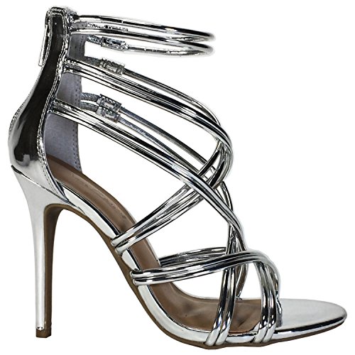Anne Michelle Women's Metallic Multi Strap Heel Sandal
