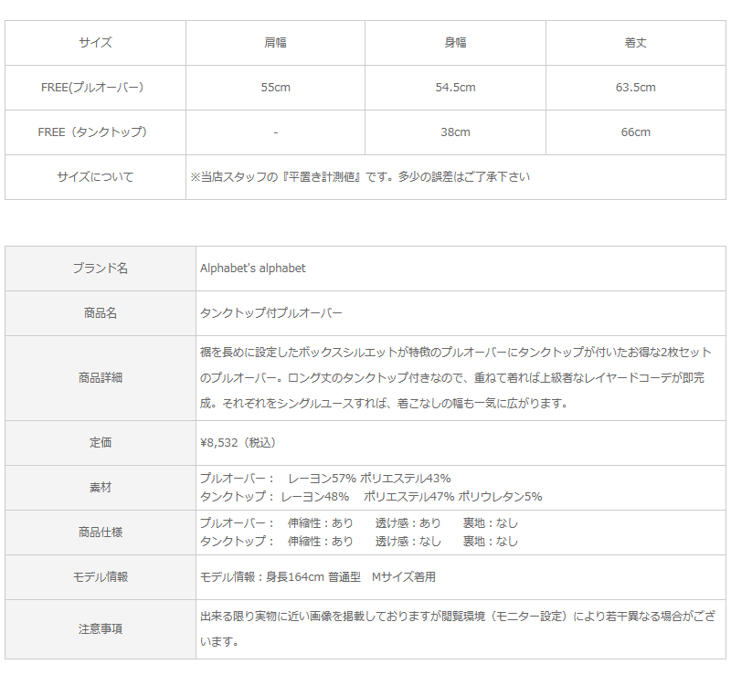 タンクトップ付プルオーバー