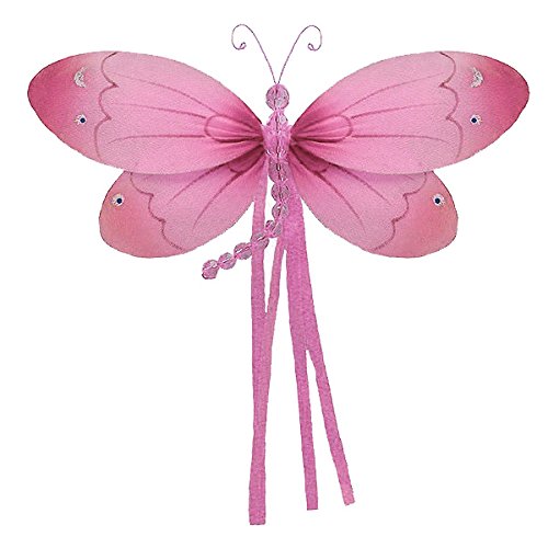 The Butterfly Grove Riley Dragonfly 3D Hanging Mesh Nylon Decor, Pink Carnation, Small, 7" x 4"