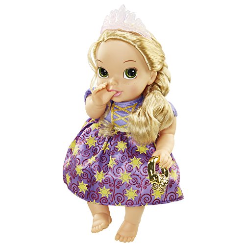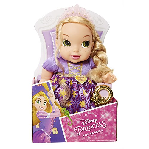 What a magical start to a sweet fairy tale friendship! Baby Princess Rapunzel is dressed in a royal gown and tiara making her the perfect friend to love and cuddle! Be sure to give her lots of hugs and brush her beautiful hair. And with a little help, Princess Rapunzel can actually hold her "Pascal-inspired rattle!" Includes: Baby Doll, Tiara and Rattle Toy.Feature