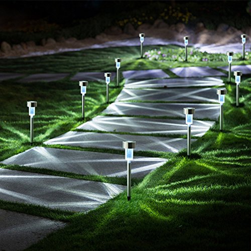 - ENERGY CONSERVATION: No electricity needed, and absorb sunlight to charge. realizing energy saving.Bright enough--(about 8 hours), 12 pack LED solar path lights cast enough light to brighten your path, enhancing both visibility and safety,