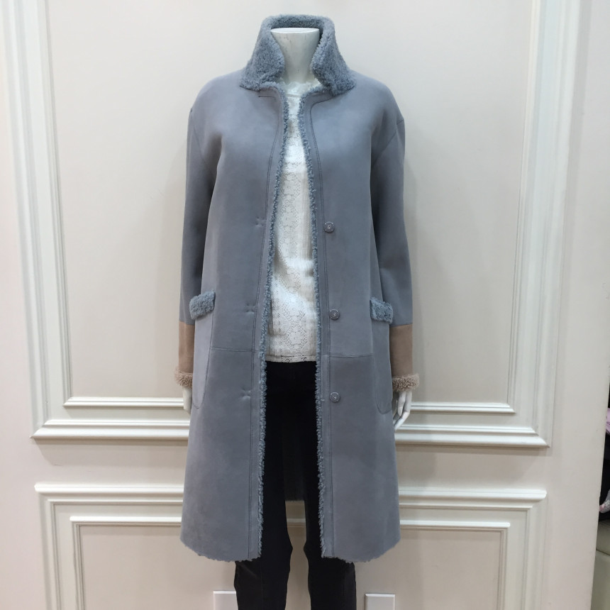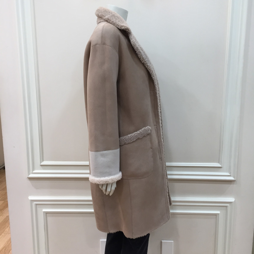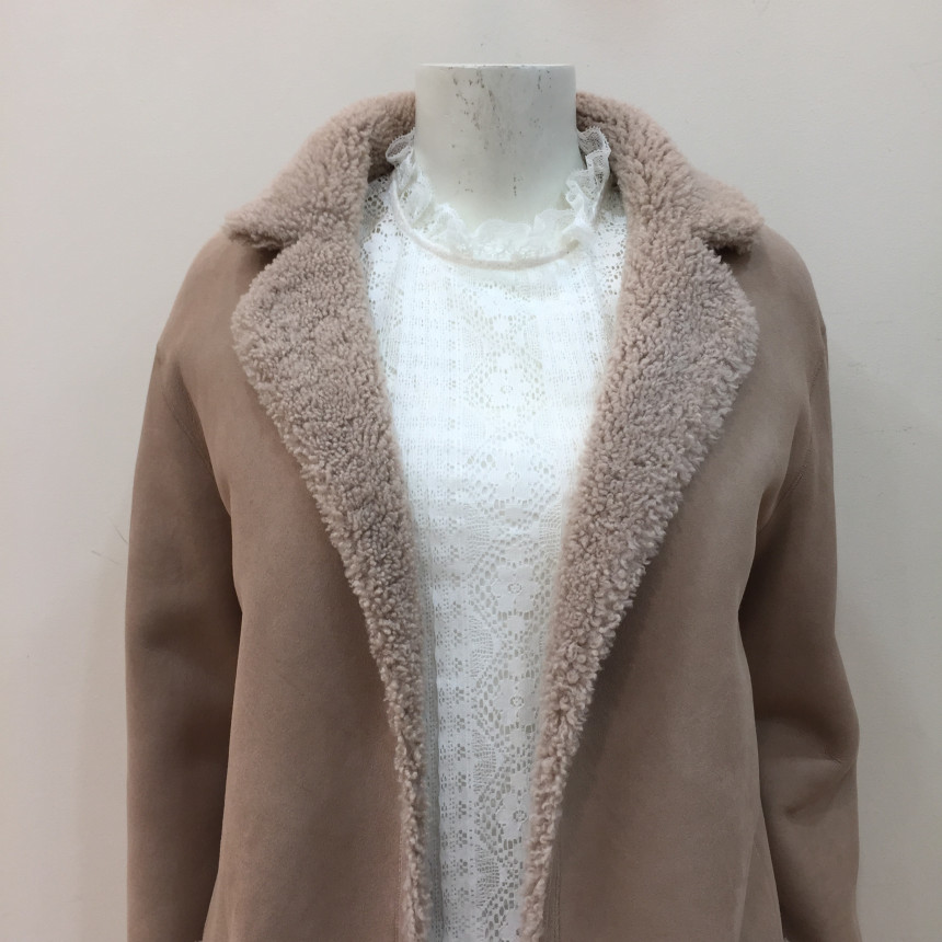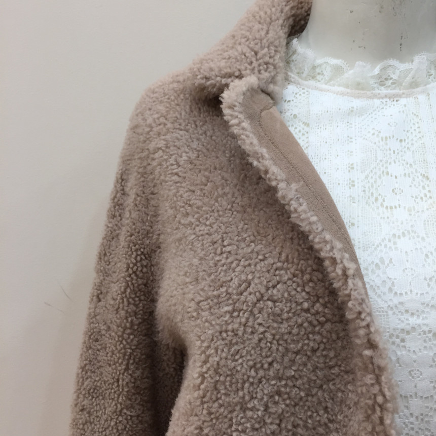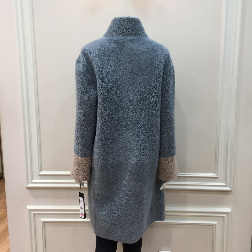 은은한 파스텔톤의 컬러감이 포인트인 레니본 양가죽 무스탕 코트입니다.