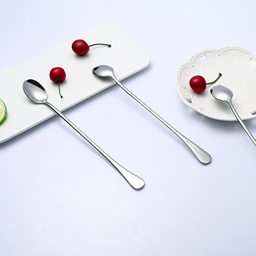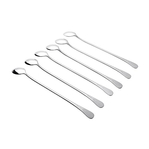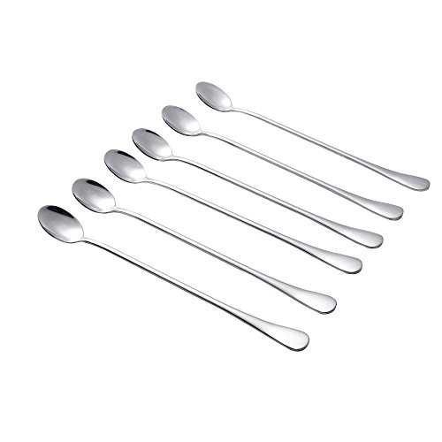 PUTING 9.37-inch Long Handle Iced Tea Spoon, Stainless Steel Coffee Beverage Tall Glass Spoon, Cocktail Mixing Stirring Spoons, Ice Cream Spoon, Set of 6 per package