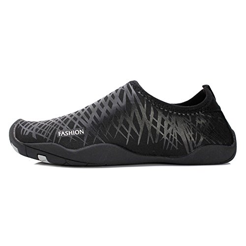 Binding : Apparel Product Description Comfortable Wearing Uppers made out of spandex and polyester allow the aqua socks to fit like a second skin Easy On Off The pull tap at the heel allows for quick and easy entry, protecting your feet from dripping off. Perfect Drain Sole Holes on each bottom to ensure proper water flow out of them FOOT SAFETY The rubber soles, with a really comfortable and thick foam arch-support insert inside of them, are flexible yet thick enough to protect your feet from stepping on rock and stone. 0 |