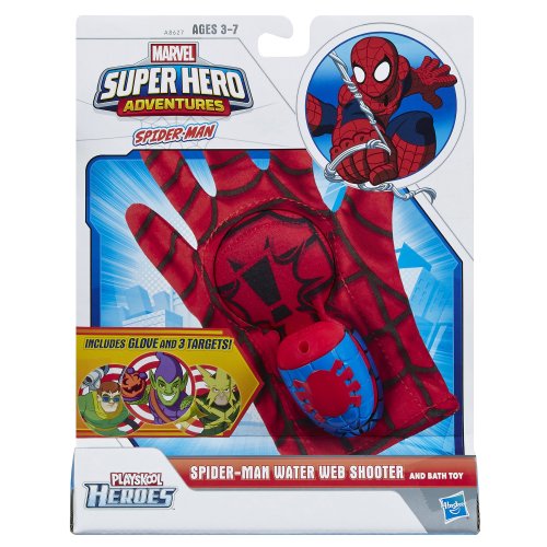 Have we got some superhero bath-time fun for you and your little hero! He can pretend to be just like the web-slinging superhero Spider-Man with this water-firing Spider-Man Water Web Shooter! The shooter attaches to a glove that looks like it’s part of the wall-crawler’s costume, and comes with 3 targets that have Spidey’s villain foes on them. Make bath time hero time with the Spider-Man Water Web Shooter and Bath Toy!
