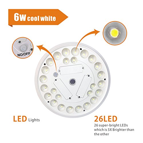 Creative design: Up-graded UFO shape Design, 6 solar panels on the face and 26 super brighten LED lights under the back