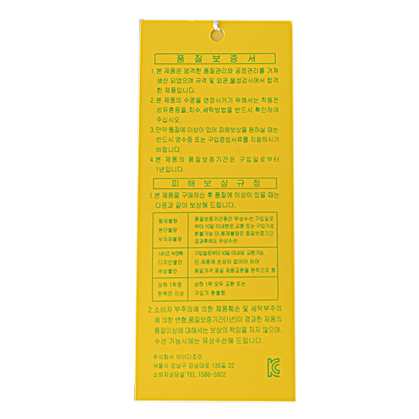 품질보증기준 : 본 상품에 이상이 있을경우 공정거래위원회 의거하여 보상해드립니다.