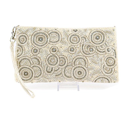 -. Feature : zipper closure, removable beaded wristlet strap, 1 interior slip pocket, genuine Swarovski crystal accents, fits a cell phone