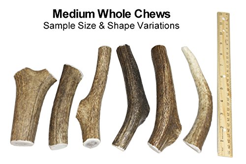 -. Feature : One Medium Whole Grade A elk antler chew, L = 5-8 inch, Dia = 0.75-1.5 inch, For 20-45 lb dogs / Long-lasting whole (un-split) antler bone for hours of content chewing. Satisfaction Guaranteed / A natural alternative to processed chews. Feel good knowing your pet is getting nature's best! / Each piece is hand-cut and carefully sanded to remove any sharp edges that may harm your pet / Supervise your pet during use. Remove if chew is worn to a size that presents a choking hazard.