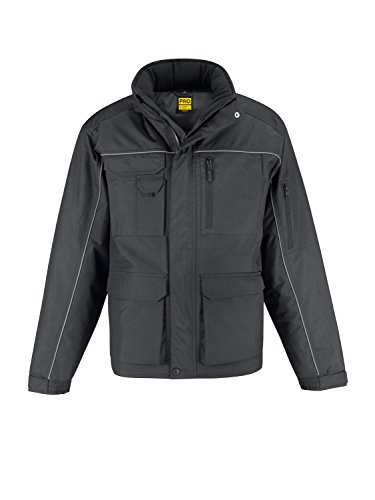 Binding : Apparel Product Description Made to last, highly functional PRO jacket with hood, heavy jacket designed to protect in bad weather conditions, offering visibility and comfort. Waterproof. Windproof. Thermo-insulated. Heavy padded lining for extra warmth. 12 multifunctional pockets. Ergonomically designed for best ease of movement. Perfect for outside work. 0