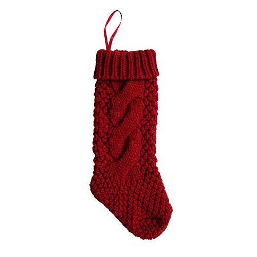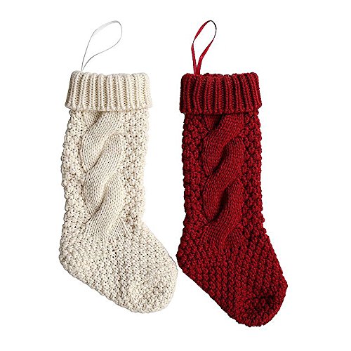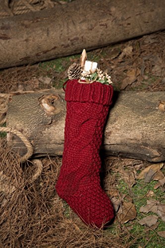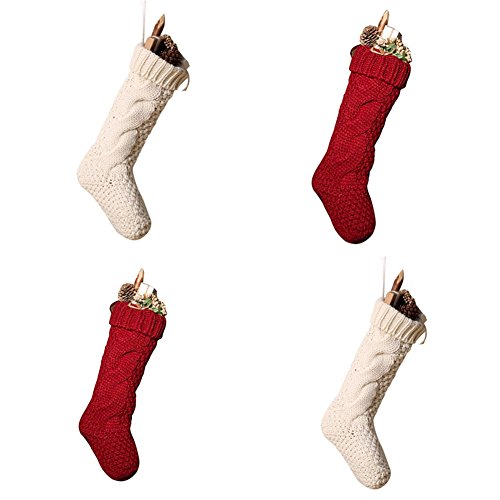 Pack 4, Unique Burgundy and Ivory White Knit Christmas Stockings 14"