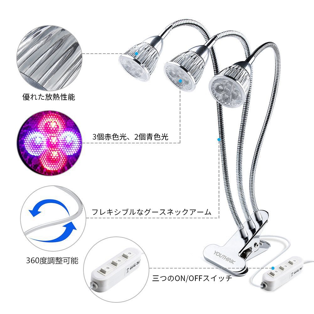 Light wavelength: red (620 - 630 nm), blue (near 460 nm) -