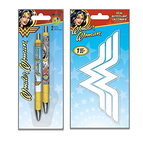 -. Feature : Take your love for comic books wherever you go with this Officially Licensed Wonder Woman Gel Pen and Wonder Woman Logo Decal Set. / Includes 2 Soft Grip, Smooth Writing 0.7mm Gel Pens each with their own unique design and 1 White Wonder Woman Logo Decal. / Wonder Woman Decal is perfect for sticking on Bumpers, Windows, Doors, Laptops, Lockers, and just about anywhere you'd love to show off your nerdiness! / This bundle makes a great gift for comic book fans: Use for Christmas Gifts, Stocking Stuffers, Birthday Gifts, Thank you Gifts and more!