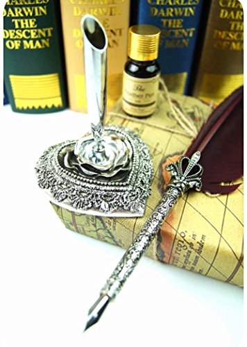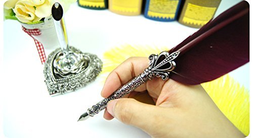 -. Title : ZTCOO Antique Feather Pen Set Metal Nibbed Calligraphy Pen Set Writing Quill (Wine Red)