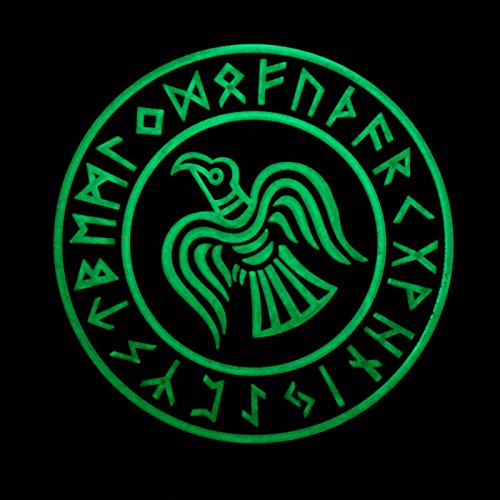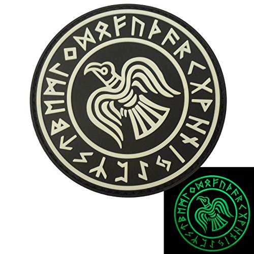 Glow Dark Rare Norse Viking Raven Runes Odin God of War Morale PVC Rubber 3D Touch Fastener Patch