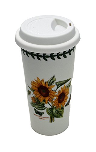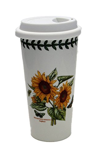 Portmeirion Botanic Garden Travel Mug Cup with Silicone Lid, 15 oz., Sunflower
