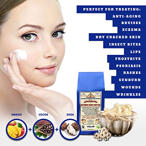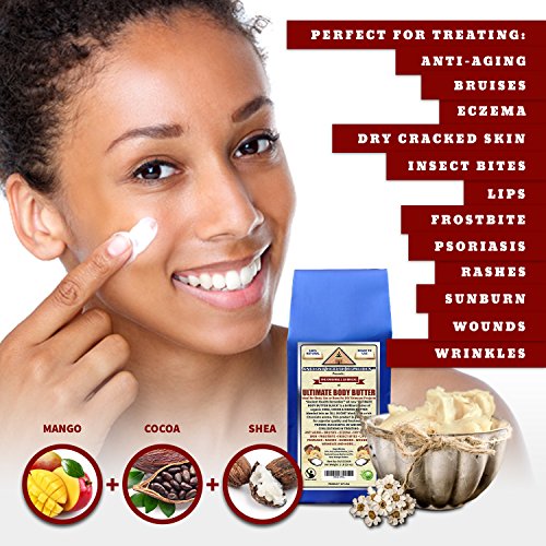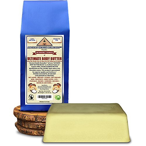 - Ancient Health Remedies™ all new Authentic 'ULTIMATE BODY BODY BUTTER BLOCK' is a brilliant fusion of organic SHEA, COCOA & MANGO BUTTER blended into an 'ALL IN ONE' block with a rich Chocolate aroma. This product is the safest and most affordable 'All Natural' alternative to chemically refined skincare products and doctor prescribed skin ointments used in treating Anti-Aging, Dry, Red Skin, Eczema, Frostbite, Psoriasis, Rashes, Sunburn, Wounds, Wrinkles and more...