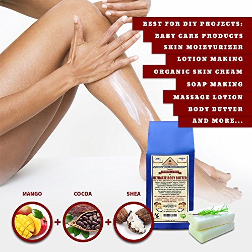 - *100% PURE, ORGANIC, UNREFINED, PREMIUM RICH, VEGAN AND READY TO USE for topical body use or ingredient base for homemade 'Do It Yourself' body butter recipes. Ideal for Baby Care Products, Lotion Making, Organic Skin Creams, Massage Lotions and Soap Making.