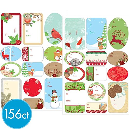 AMSCAN WINTER WONDERLAND CHRISTMAS ADHESIVE GIFT LABEL PARTY FAVORS, MULTICOLOR