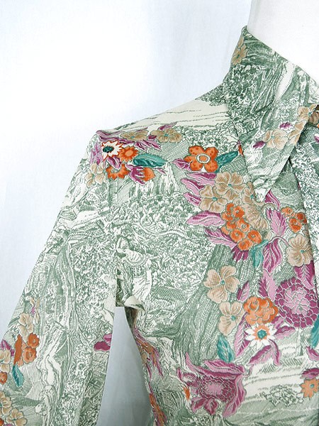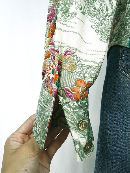 Ladies ブランド- カラーカラフル・緑 メール便不可 コンディション★★★ 素材記載なし 表記サイズ記載なし スタッフコメント衿、芯入り。両袖口にホツレあり。 実寸サイズ 着丈 58 cm 身幅 44 cm 肩幅 35 cm 袖丈 58 cm ※ウエスト・ヒップ以外は平置き採寸