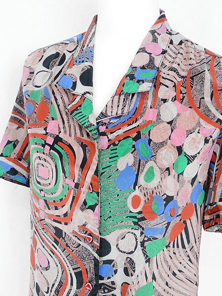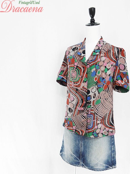 Ladies ブランド カラー赤・青・緑・カラフル メール便不可 コンディション★★★ 素材ポリエステル 表記サイズ7 実寸サイズ 着丈 60 cm 身幅 44 cm 肩幅 37 cm 袖丈 25 cm ※ウエスト・ヒップ以外は平置き採寸