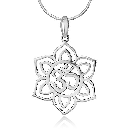 -. Title : 925 Sterling Silver Blooming Lotus Flower Om Aum Ohm Sanskrit Symbol Pendant Necklace 18"