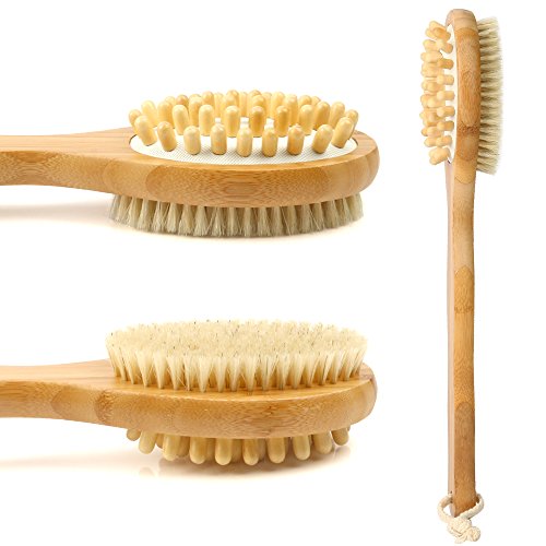 EASY AND COMFORTABLE: The bamboo bath brush outperforms the wooden one in that it is harder and does not get clashed; it does not absorb water or get dry as the wooden one does; it does not develop mildew or get warped after soaking in water as the wooden one does.