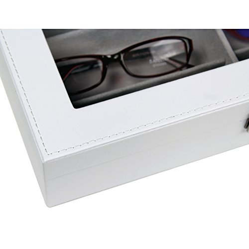 - ELEGANT & STYLISH — Beautiful white faux leatherette case with gray fabric interior allows all the eyewear enthusiasts to store, display and show your collections while keeping them away from dust, fingerprints and scratches