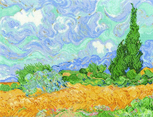DMC BL1067/71 16 Count Van Gogh's A Wheatfield W/Cypresses Counted Cross Stitch Kit, 11.5" x 9", Multicolor