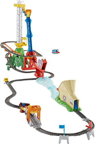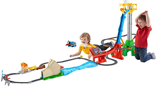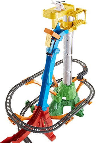 -. Feature : Complete Thomas & Friends train set includes motorized Thomas train, Harold the helicopter, cargo hopper, cargo piece, and full track layout with ramp and bridge jump / Send Thomas under the bridge and up the spiral track / When Thomas reaches the end of the track, Harold will lift him to the top of the ramp / Thomas shoots down the ramp then flies through the air for nearly two feet / Thomas lands safely and continues his journey around the rails