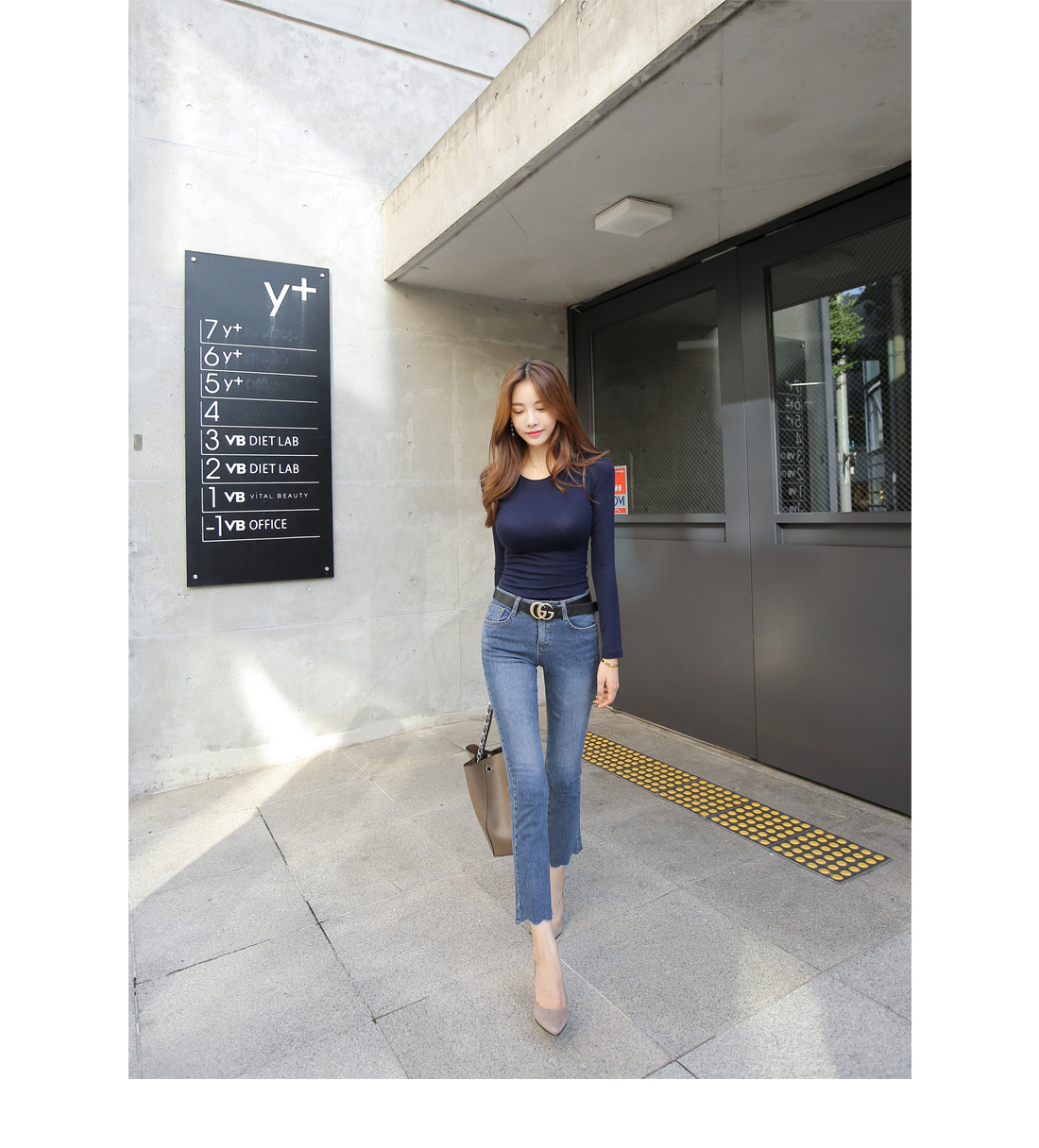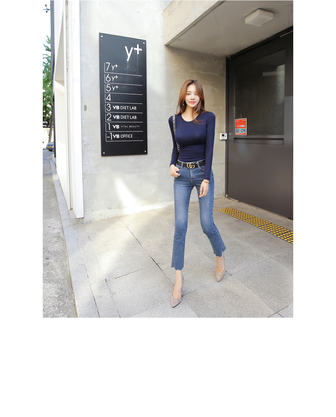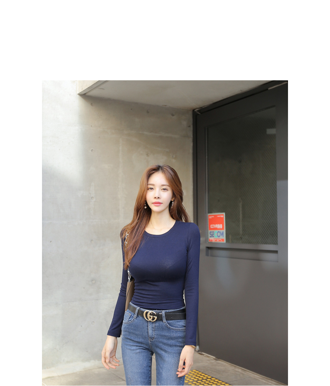 심플한 라운드 네크라인에 촘촘한 골지 짜임으로 제작되어 바디 라인을 한층 더 날씬하게 연출해주며, 자켓이나 가디건 안에 이너티로 연출해도 잘 어울려 활용도가 높아요.