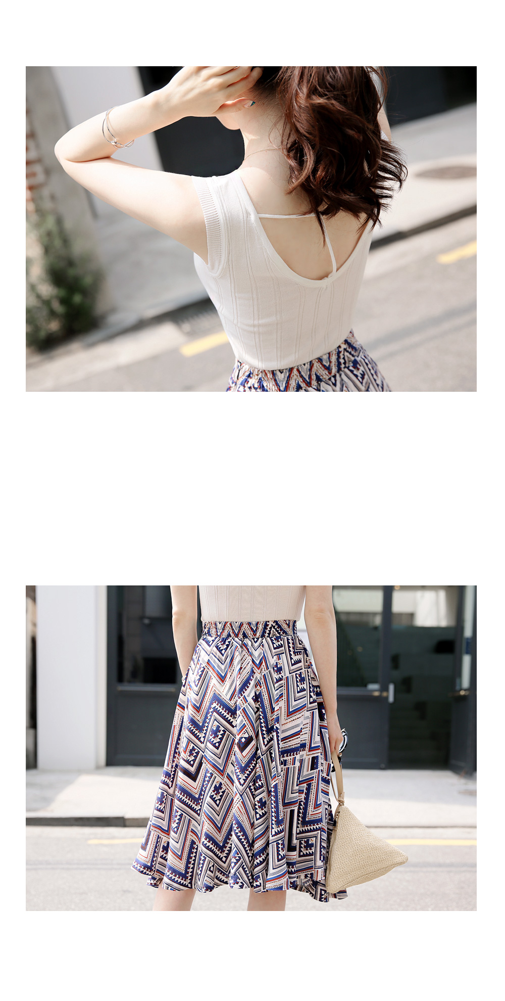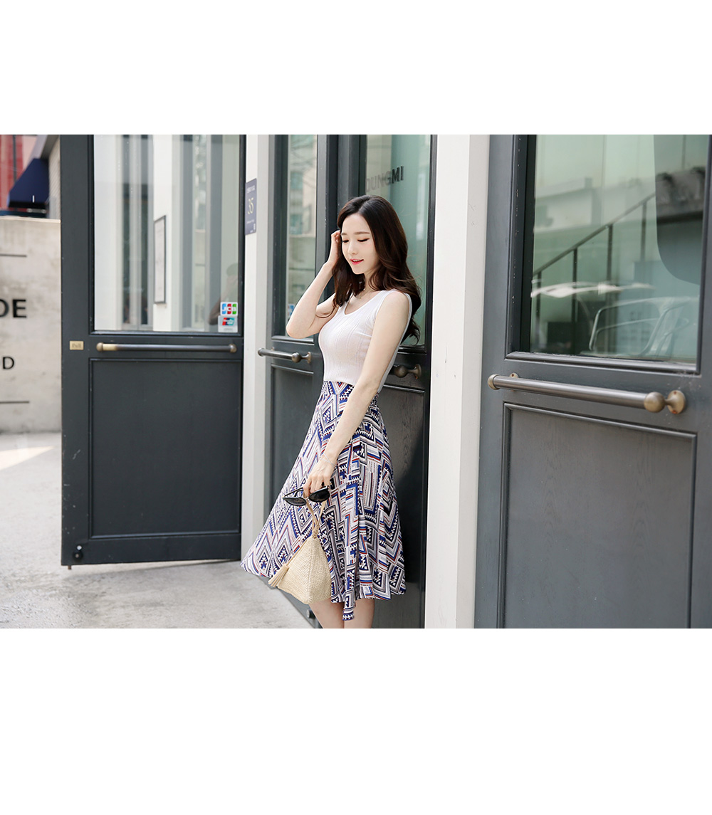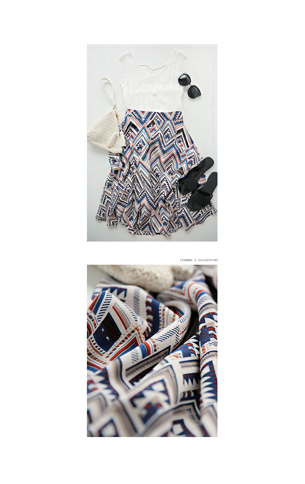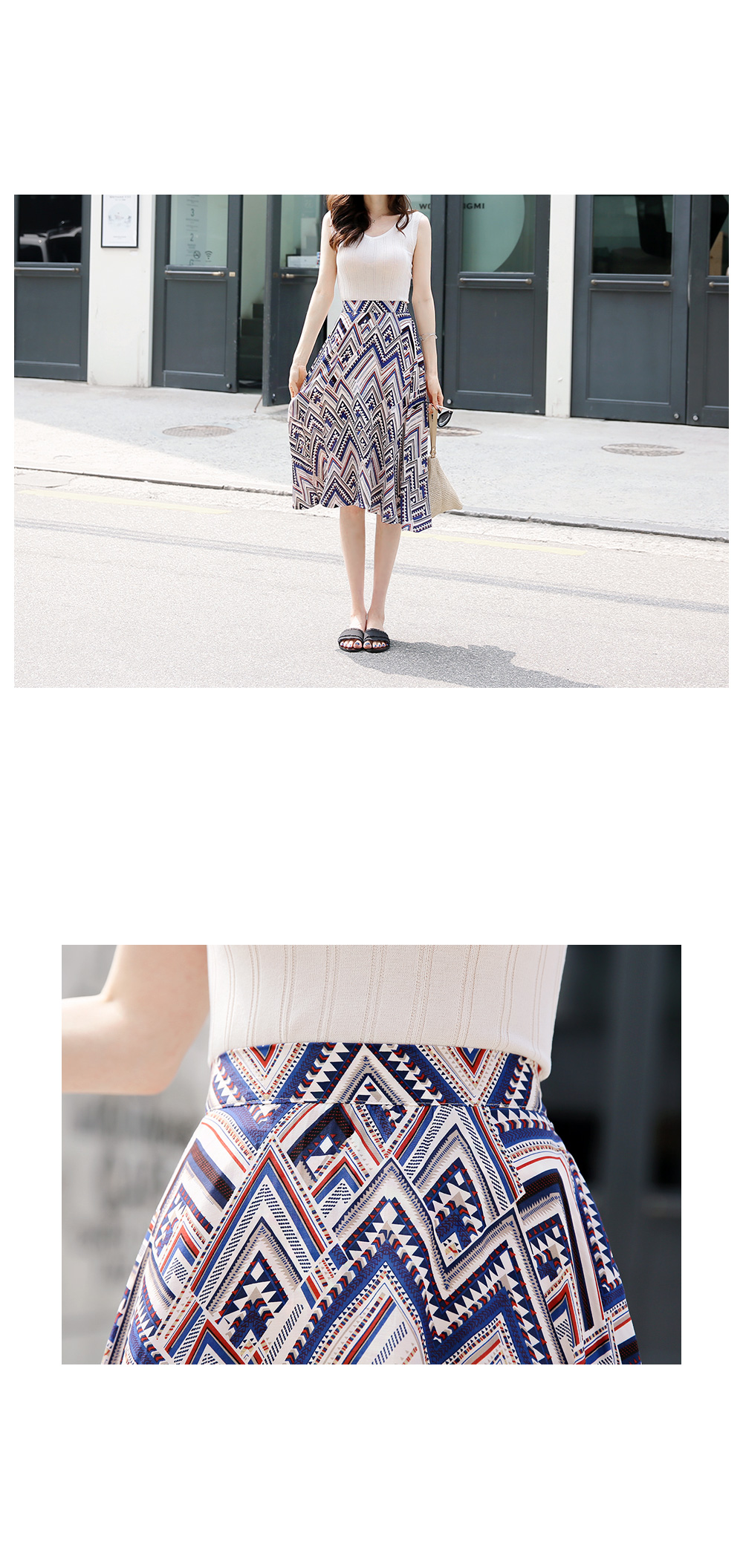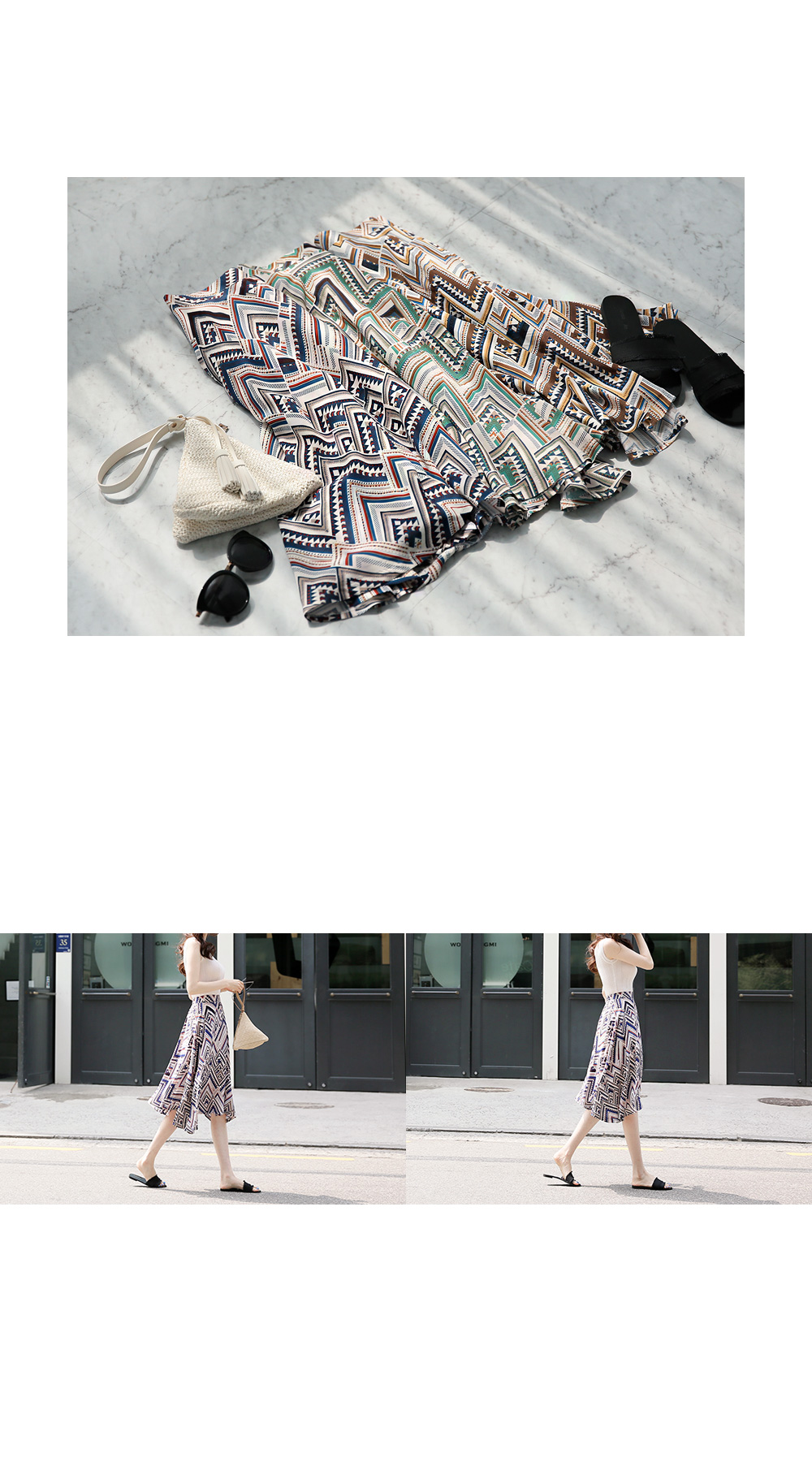 스타일리시한 패턴감이 돋보이는플레어 스커트를 소개해요!전체적으로 유니크한 패턴과 컬러감이스타일리시하면서도 화사한 룩을 완성하구요,미디 길이감으로 넓게 훌지는 플레어 디자인이여성스러움을 더하는 아이템이에요~허리는 밴딩으로 마무리해 착용감이 편하면서옆라인 지퍼로 간편한 오픈클로징까지 가능하구요^^한 벌쯤 소장하시면 더운 날씨에도화사한 룩을 완성해 드리는 스커트랍니다!