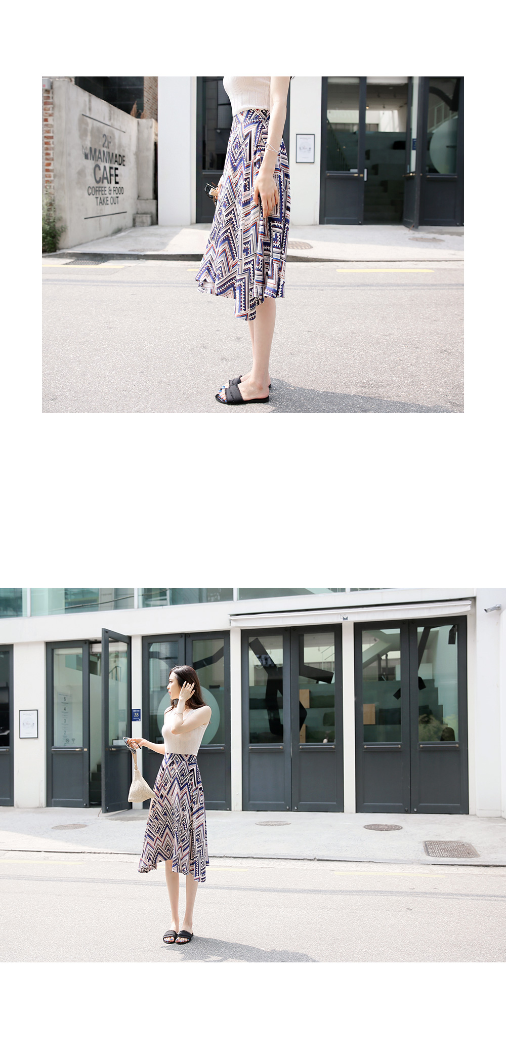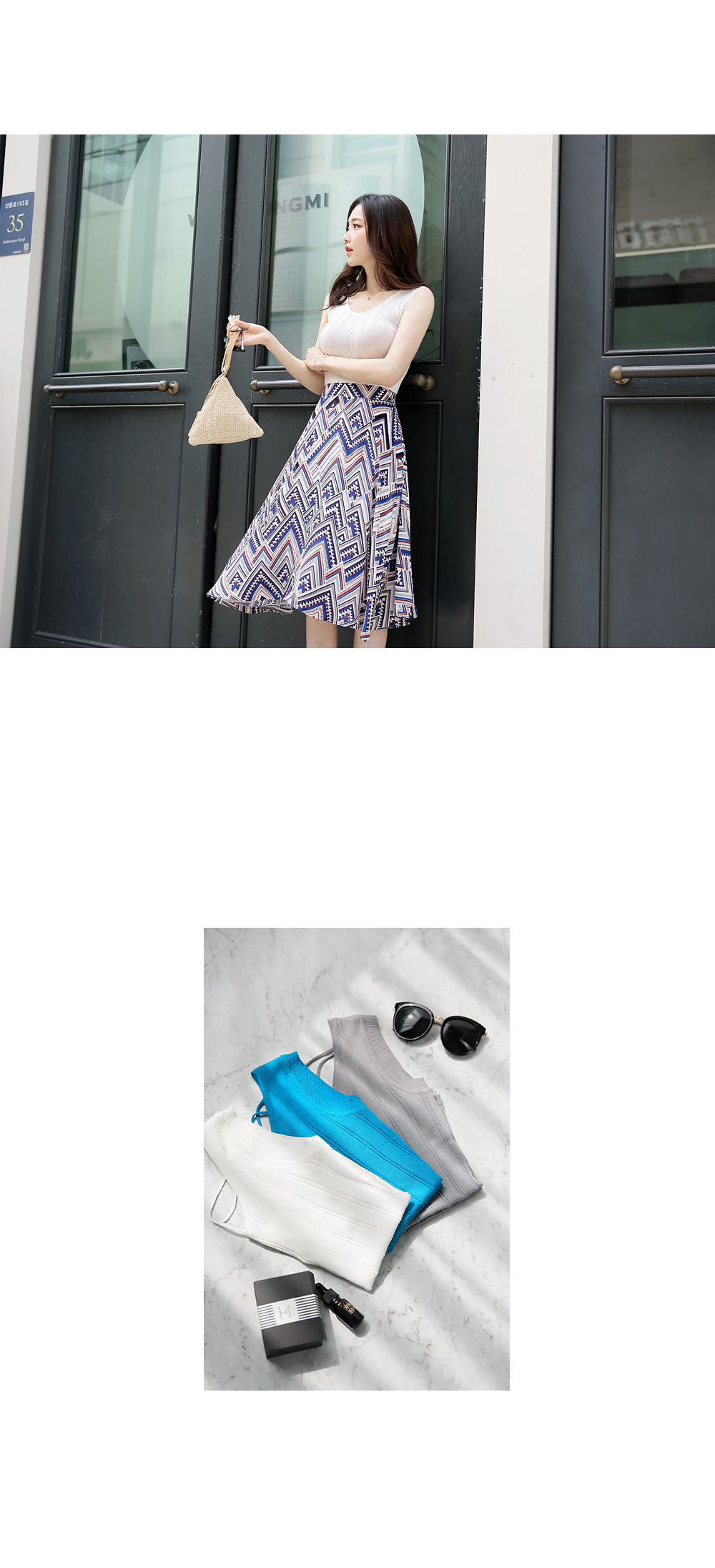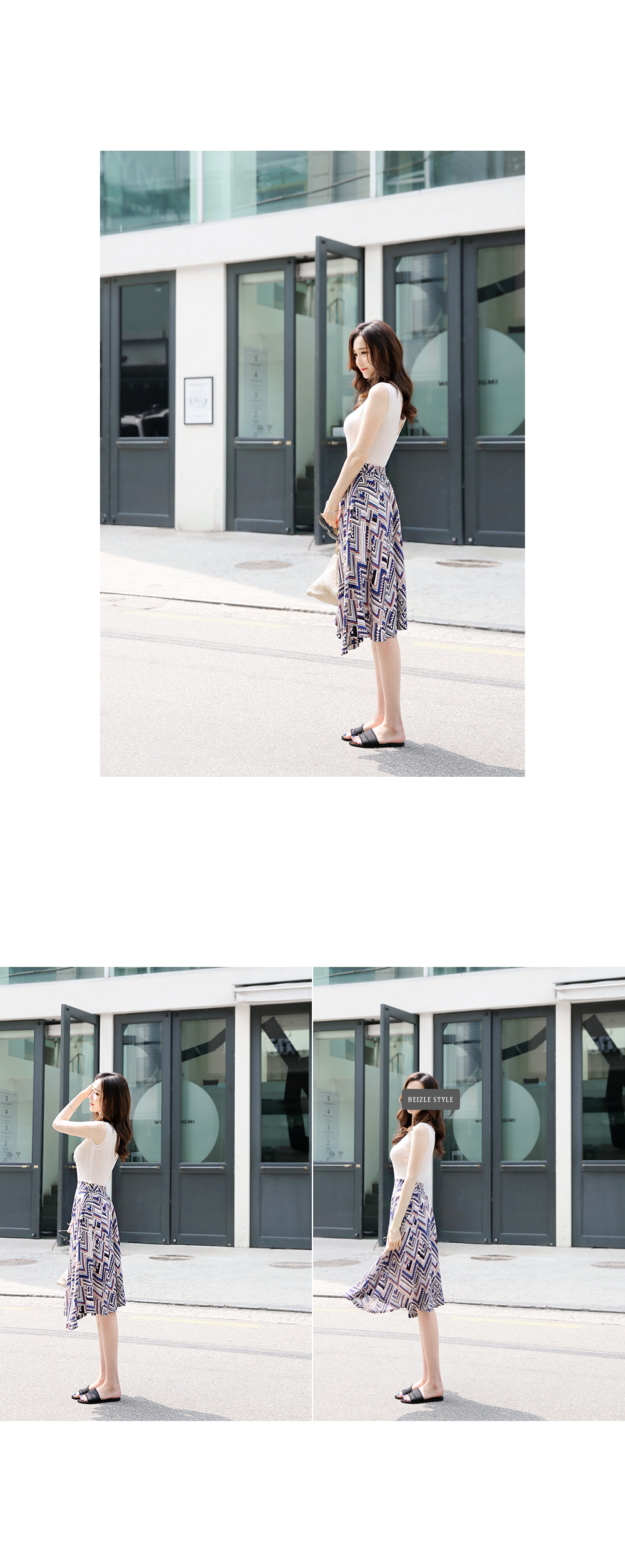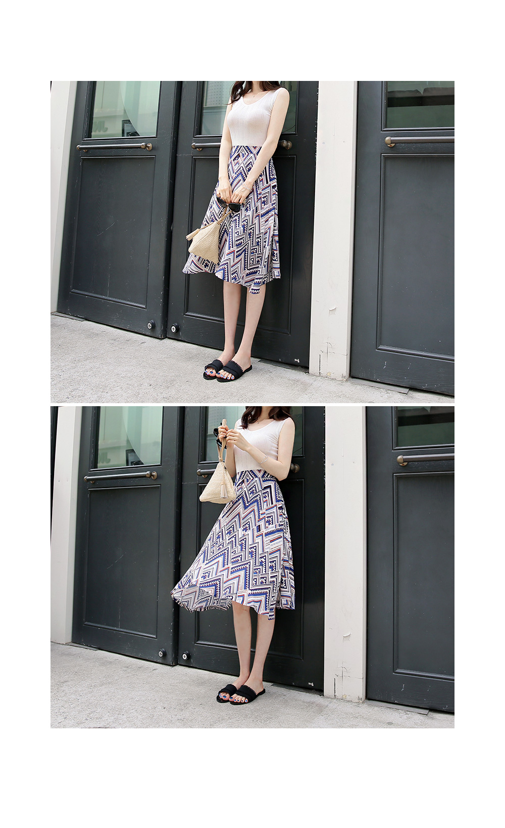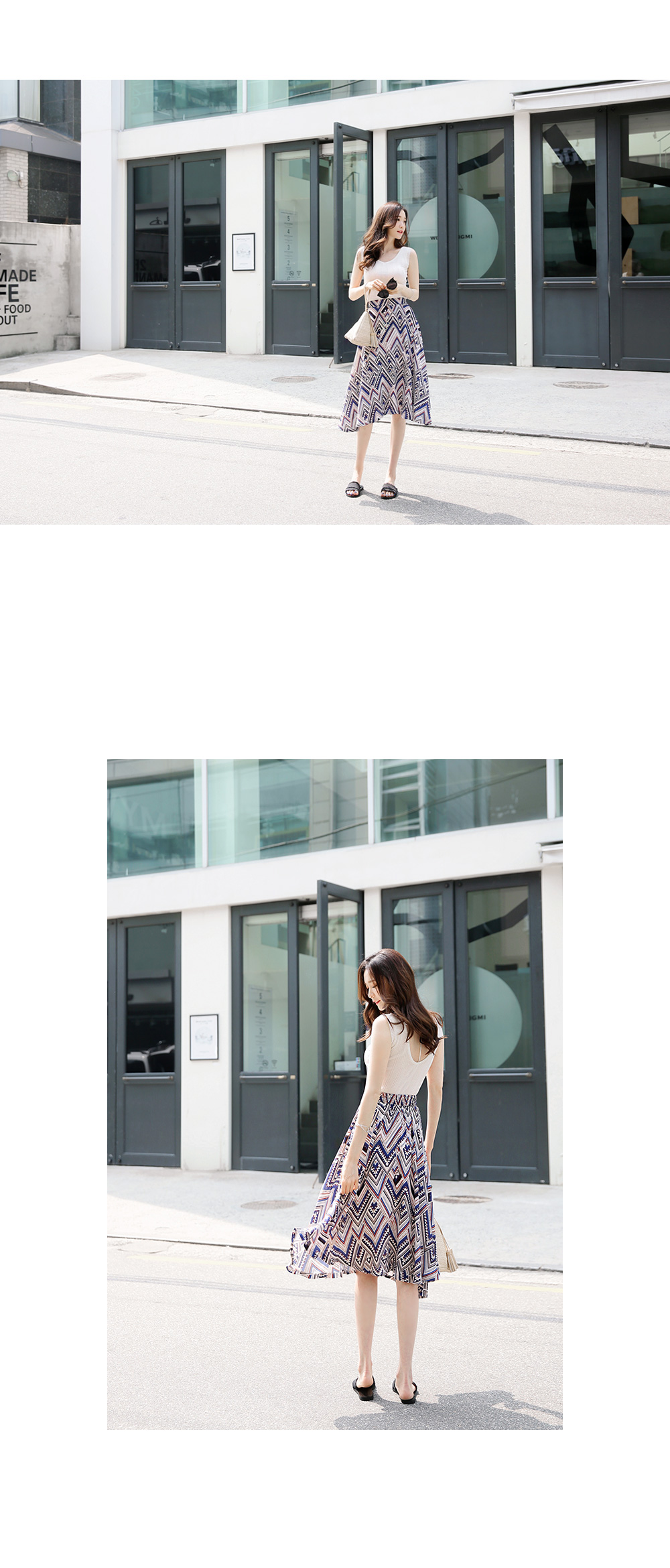 스타일리시한 패턴감이 돋보이는플레어 스커트를 소개해요!전체적으로 유니크한 패턴과 컬러감이스타일리시하면서도 화사한 룩을 완성하구요,미디 길이감으로 넓게 훌지는 플레어 디자인이여성스러움을 더하는 아이템이에요~허리는 밴딩으로 마무리해 착용감이 편하면서옆라인 지퍼로 간편한 오픈클로징까지 가능하구요^^한 벌쯤 소장하시면 더운 날씨에도화사한 룩을 완성해 드리는 스커트랍니다!