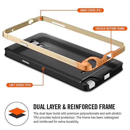 - Feature : Combination of TPU and Polycarbonate for drop and scratch protection / Slim and form fitted to show the perfect shape of your device / Metalized polycarbonate control buttons for a stylish look / Advanced Shock Absorption Technology: Web Pattern TPU case / Compatible with Samsung Galaxy Note 4 (2014)