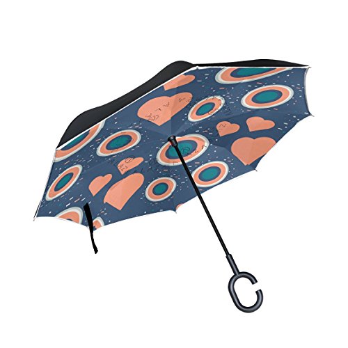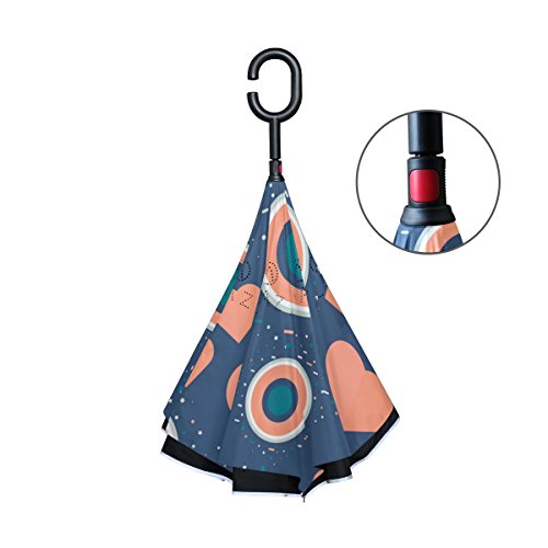 (AHOMY)/Accessories/Umbrellas/DIRECT FROM USA/AHOMY Valentine's Day Heart Geometric Figure Round Large Double Layer Inverted Umbrella Windpro...