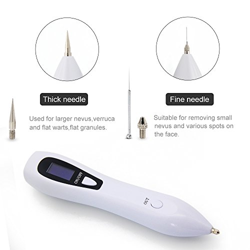 - Professional Mole Removal Pen:Having 2 kinds of needles - coarse needle and fine needle. remove spots, shallow, small area of spots, using small gear operation. Larger areas with larger areas of bad spots,use large file operations, remove spots, shallow(not to puncture the skin operation)