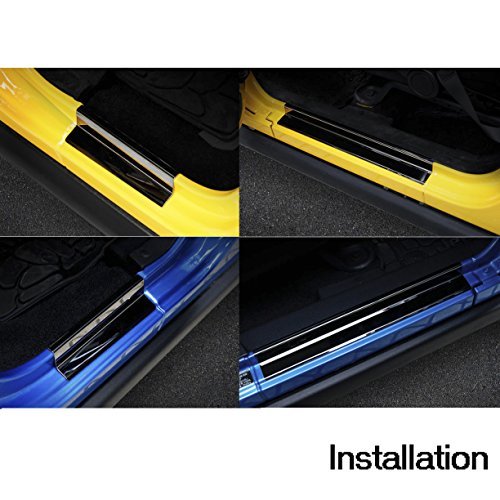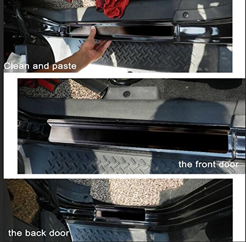 2. Compared to the length of the Door Sill Protector, two longer pieces on the front doors' threshold, two shorter pieces on the back doors' threshold.