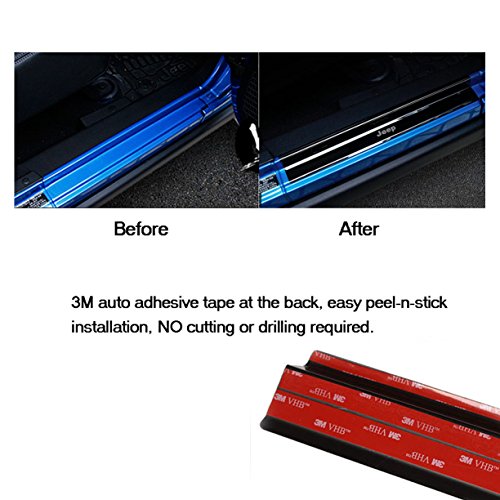 Great Door Sill Protector! Set of four, Stainless Steel, Jeep logo. Protects door sill surfaces from scratches. Your lower door sills can easily be scuffed by daily entry and exit from your Jeep.