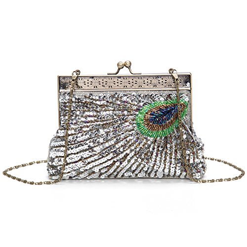 FABRIC - Full sequins beaded + fabric lining,Sequins decorative vintage clutch bag, very beautiful and sparkl, like the peacock's feather, makes your dress collocation to catch everybody's eyes
