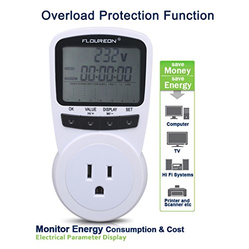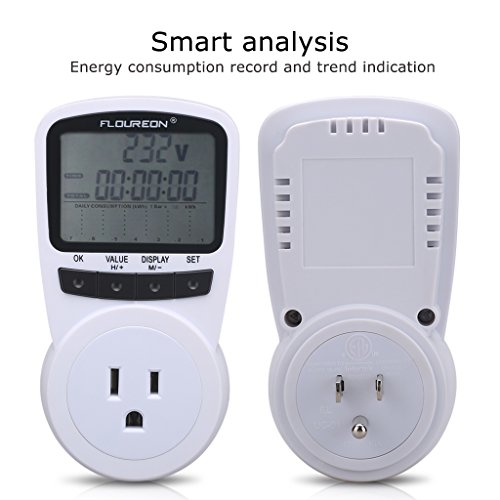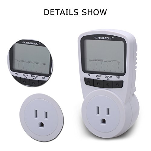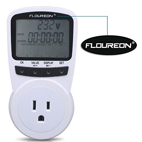 Floureon Power Meter Socket AC Power Energy Plug Energy Monitor with Digital LCD Display for Power Consumption Cost Meter Watt Voltage Amp Meter Calculator Analyzer