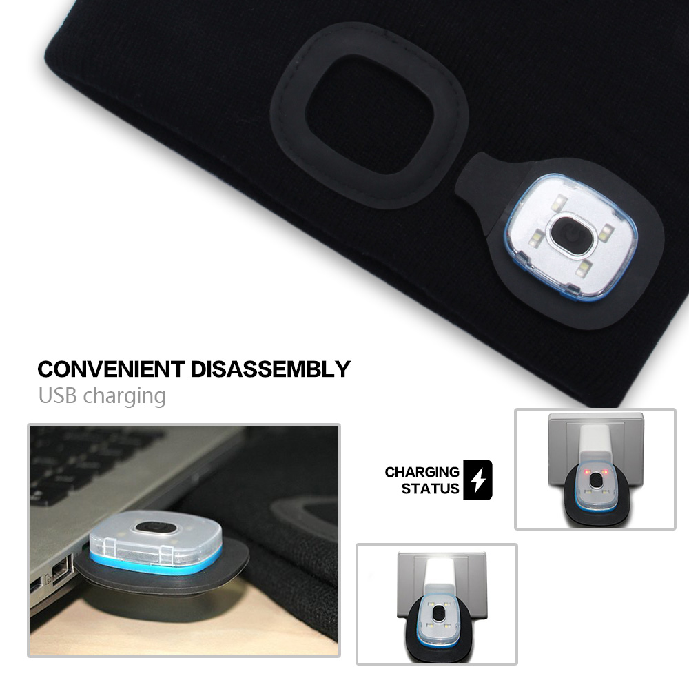 • Stocking Cap with 8 LED Lights Features 100% acrylic material and 8 LED lights. One size fits most.