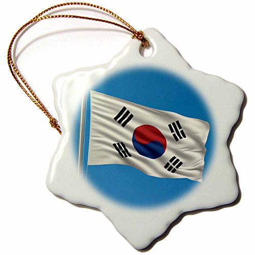 3dRose orn_157063_1 Flag of South Korea on a Flag Pole with Blue Sky Korean Snowflake Porcelain Ornament, 3-Inch