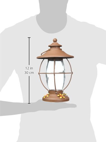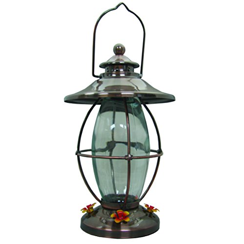 -. Feature : Lantern-style glass hummingbird feeder / Doubles as garden decor / Twist off base for easy filling / Copper plated metal cap and base / 24 ounce nectar capacity