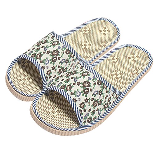 -. Feature : Made of healthy and eco-friendly flax material, which not only breathable, but also sweat absorption / It is very comfortable and light to wear at your house all the year round, on the ceramic tile or on the wood floor / Suitable for house, shower,swimming,beach,Spa,Pool,Travel,hotel, Casual occasions / Skidproof EVA soles features good wear-resistance, light, not easily deform and no scuff to the floor / It is best choice for you and your families at home
